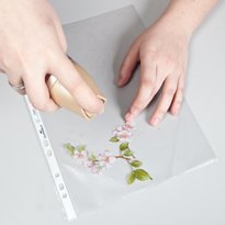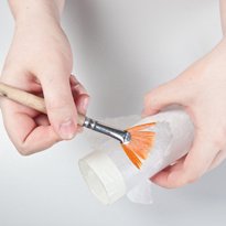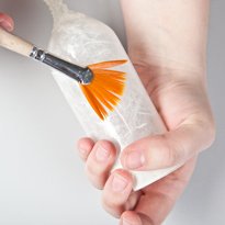 الآن تحتاج إلى الغراء ورقة إلى السطح – وهذا يمكن بسهولة أن يتم عن طريق ترطيب الزجاج مع فرشاة مبللة. عندما يتم تغليف الزجاج تماما، تتم إزالة بقايا الورق المنتفخ.