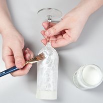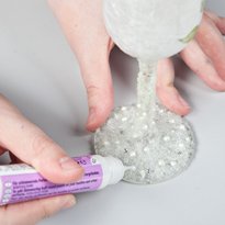 الآن نحن منخرطون في ساق من الزجاج – مع مساعدة من سكين لوحة وضعنا معجون الزخرفية تتكون من كرات شفافة صغيرة. مع الطلاء خاص نخلق اللؤلؤ “وهمية” على القدم وعلى الجزء العلوي من المنتج. فإنه لا يزال ينتظر تجفيف كاملة والزجاج النبيذ لدينا هو على استعداد. ونحن نذهب لتزيين الثانية.