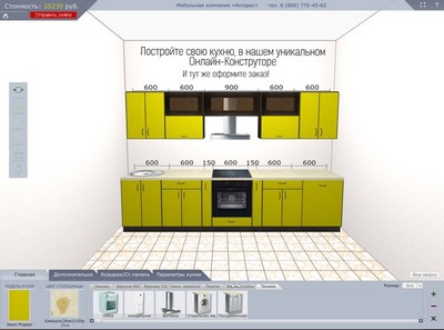 لراحة العملاء، قمنا بتطوير مصمم المطبخ مريحة وسريعة على أساس نماذج من متجر على شبكة الإنترنت. نحن نقدم لاستخدام هذه الخدمة، وتأكد من كيف يمكنك بسهولة تصميم المطبخ أحلامك. مصمم على الانترنت هو حل جديد لحساب سريع ودقيق ومريحة من تكلفة المطبخ الخاص بك.