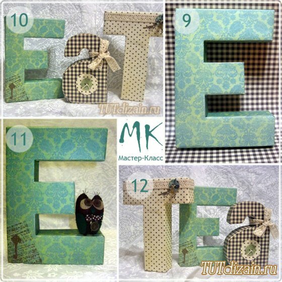 تبدأ لتزيين الرسالة. قم بتدويرها على ورقة التصميم وقم بالتعرف تقريبا على كيفية قطع لتغطية الحروف من جميع الجوانب (كل سطحه). التفاف للرسالة قد لا تعمل في المرة الأولى – انها بخير، حاول مرة أخرى (صورة 7-9).